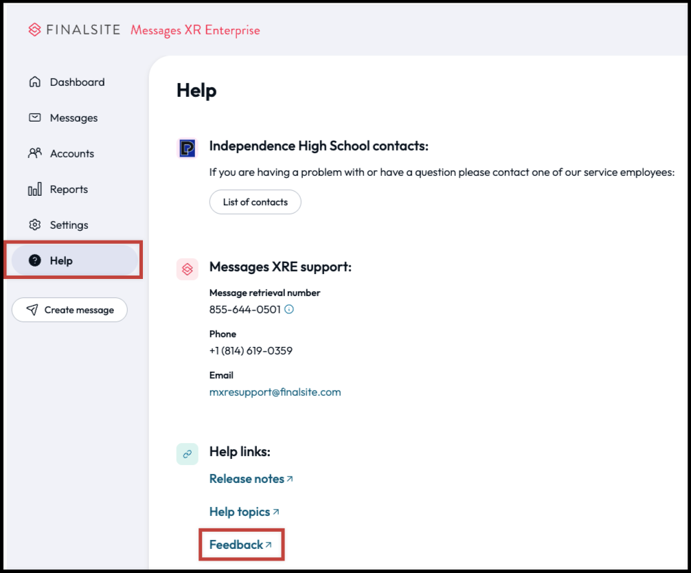 Messages XR Enterprise support contact info: