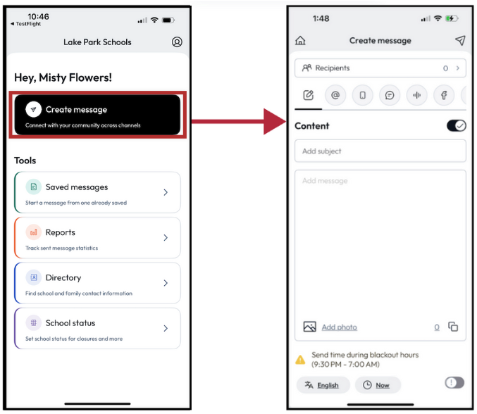 Step 1: Click Create message button on home screen