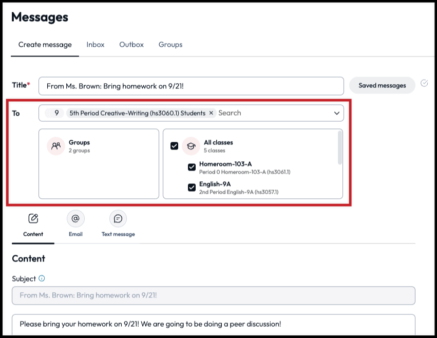 Learn more in the article, "Teacher Communications: Create and send a message."