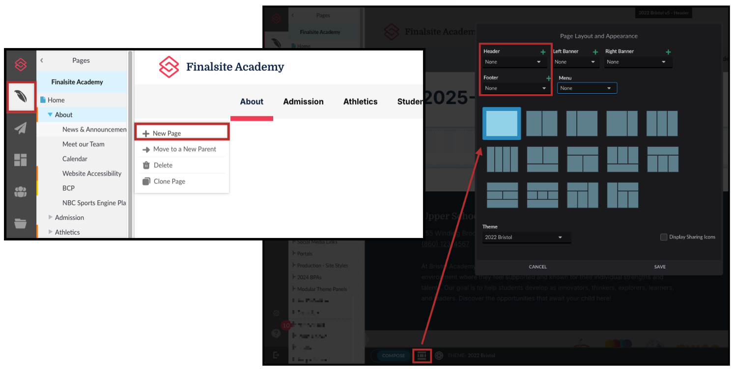 - In the Page layout and appearance menu, disable the Header and Footer on this new page by selecting None in the dropdown. This will keep the layout clean.